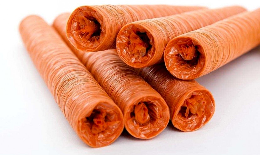 Salah satu jenis casing sosis yang tak perlu lagi diragukan kualitasnya adalah casing sosis Devro. Casing sosis ini terbuat dari kolagen sapi murni sehingga halal dan sangat aman untuk langsung dikonsumsi dengan sosis. Ini tentunya menjadi keunggulan tersendiri bagi produk casing sosis satu ini. Terlebih lagi, casing sosis merk Devro memberikan sensasi yang kenyal pada daging sosis yang tentunya tidak akan didapatkan jika Anda menggunakan produk casing lainnya. Tak hanya meningkatkan kualitas rasa dan kekenyalan daging sosis, casing Devro juga memiliki peranan penting untuk menghambat pertumbuhan mikroba pada daging yang dapat mengakibatkan daging sosis menjadi busuk dan berbahaya bagi kesehatan. Selongsong sosis dari Devro ini dapat digunakan untuk berbagai macam produk sosis, mulai dari jenis wiener, frankfurter, cabanossi, salami, chipolata, sosis China (lapcheong), dan lain sebagainya.
